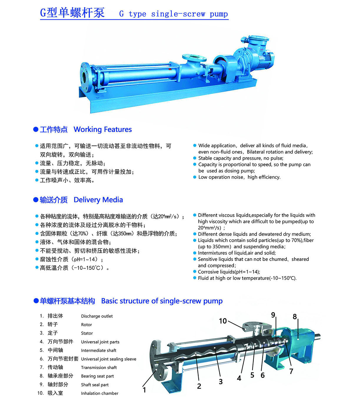 適用范圍廣,可輸送一切流動(dòng)甚至非流動(dòng)性物料,可雙向旋轉(zhuǎn),雙向輸送;流量、壓力穩(wěn)定,無(wú)脈動(dòng);流量與轉(zhuǎn)速成正比,可用作計(jì)量投加;工作噪聲小、效率高。