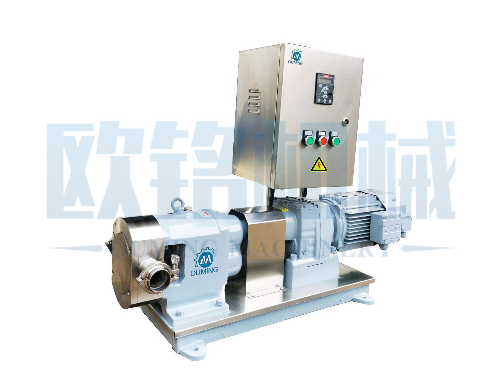 該產(chǎn)品借助于工作腔里的多個(gè)固定容積輸送單位的周期性轉(zhuǎn)化來達(dá)到輸送流體的目的。原動(dòng)機(jī)的機(jī)械能通過泵直接轉(zhuǎn)化為輸送流體的壓力能,泵的流量只取決于工作腔容積變化值以及其在單位時(shí)間內(nèi)的變化頻率,而(理論上)與排出壓力無關(guān);轉(zhuǎn)子泵依靠?jī)蓚€(gè)同步反向轉(zhuǎn)動(dòng)的轉(zhuǎn)子(轉(zhuǎn)子葉數(shù)為2-8)在旋轉(zhuǎn)過程中于進(jìn)料口處產(chǎn)生吸力(真空度),兩轉(zhuǎn)子將轉(zhuǎn)子室分隔成幾個(gè)小空間,在傳動(dòng)軸的帶動(dòng)下進(jìn)行反方向旋轉(zhuǎn),介質(zhì)即被輸送至出料口,從而產(chǎn)生了較高的排放壓力,如此往復(fù)循環(huán),特別適合中高粘度介質(zhì)的輸送。
